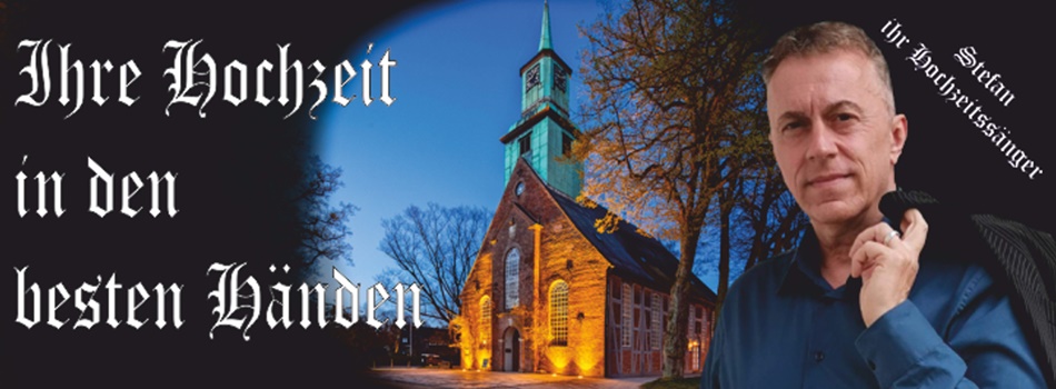 Genießen Sie unvergessliche Momente während "IHRER TRAUUNG" mit Ihren persönlichen Hochzeitsliedern und verleihen Sie Ihrer Hochzeit eine persönliche Note. Mit viel Herz, Charme und seiner angenehmen und vielseitigen Stimme verzaubert Hochzeitssänger Stefan Sie und Ihre Gäste an diesem ganz besonderen und bedeutungsvollen Tag in Ihrem Leben.